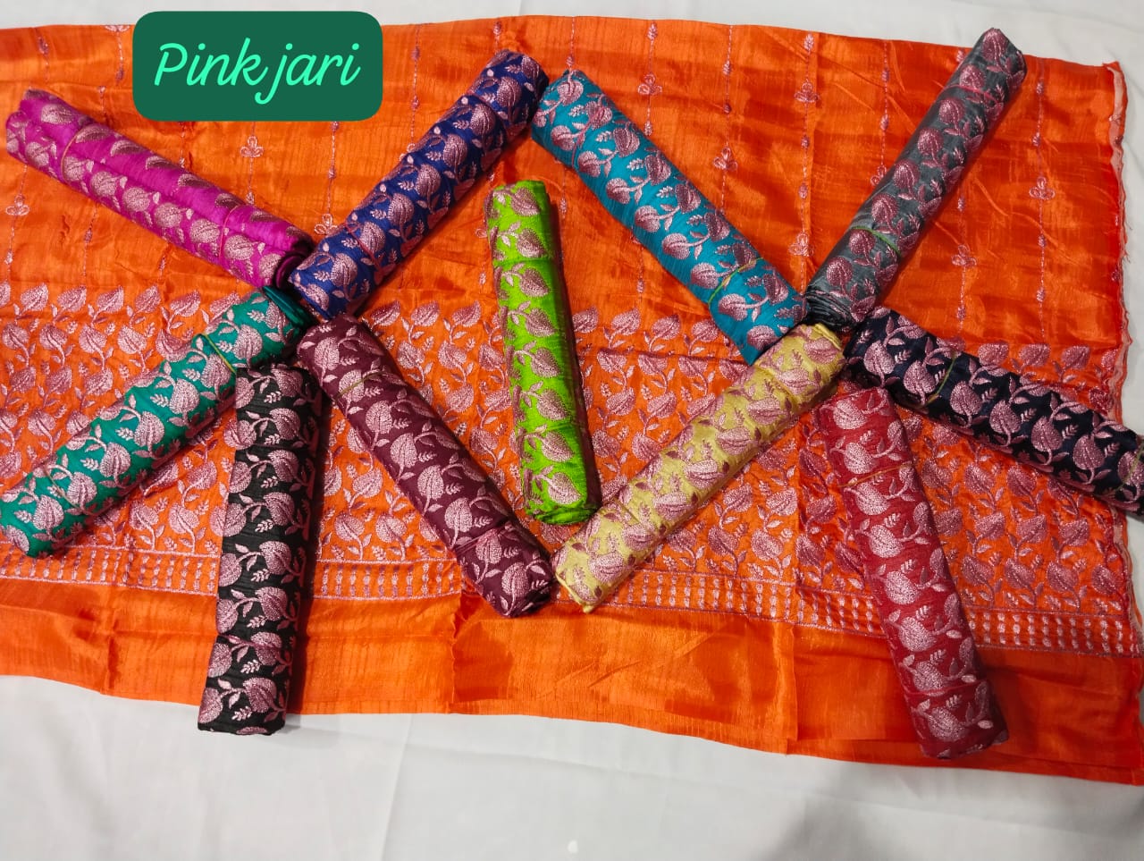 One Bundle Consist 12 Different Colors of Pink Zari Blouses. The Price For One Piece is Rs.100 plus GST 5%. The Price mentioned below is inclusive of taxes