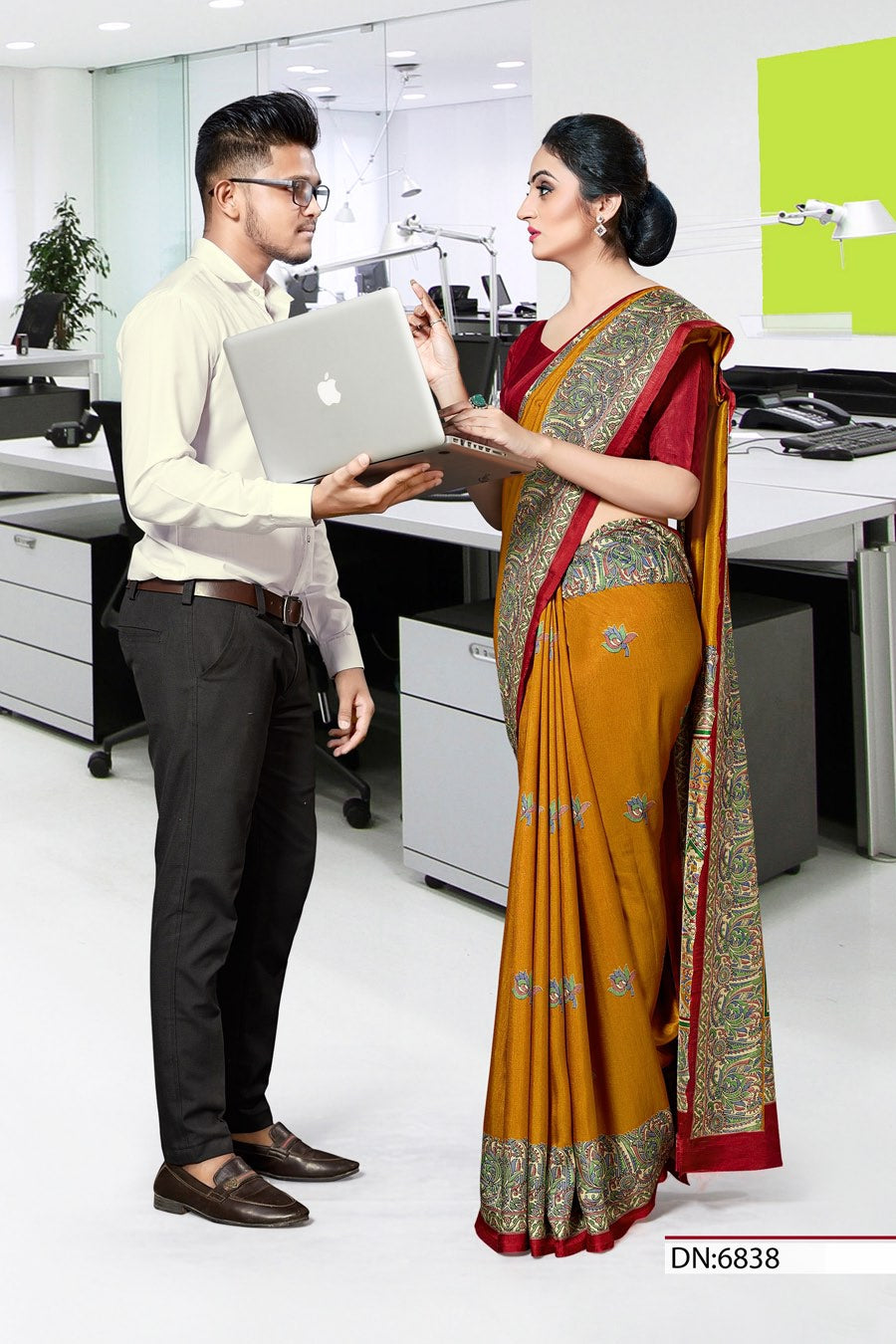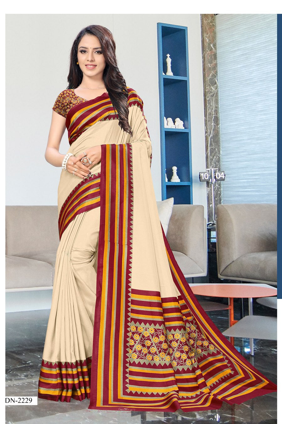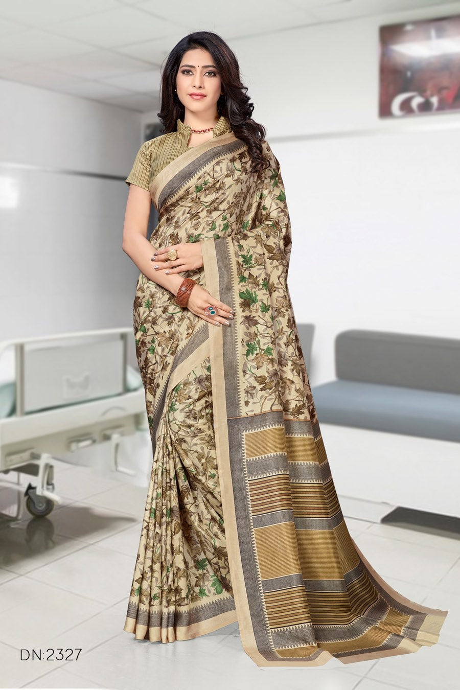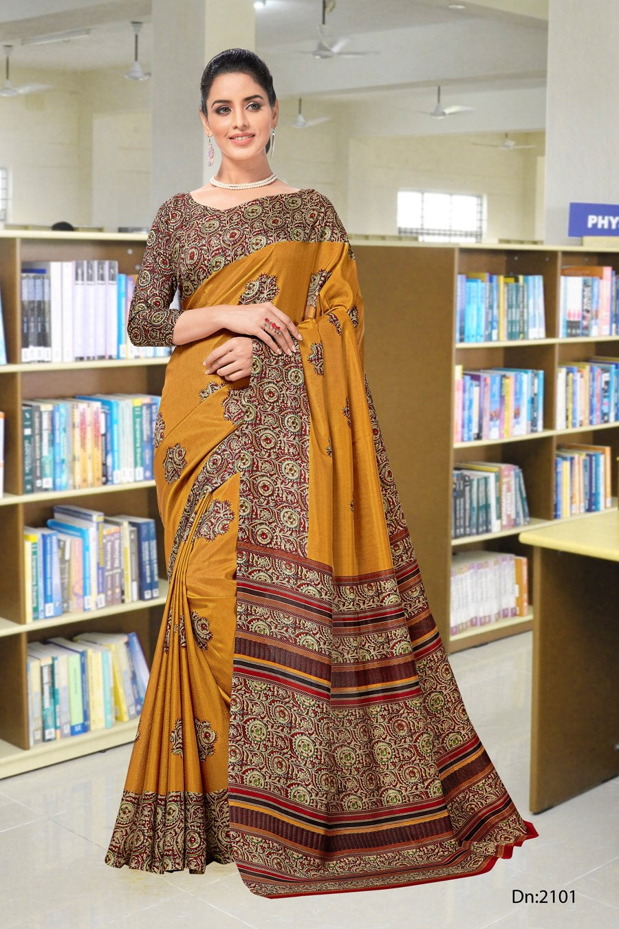 This is our all time hit polished malgudi saree used by teachers, hotels and hospitals receptionist in many places